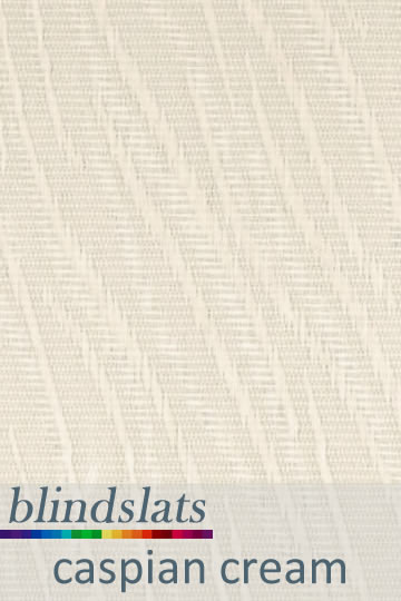 89mm Caspian Cream replacement vertical blind slats made to measure. Random wavy diagonal streaks self patterned creamy coloured fabric