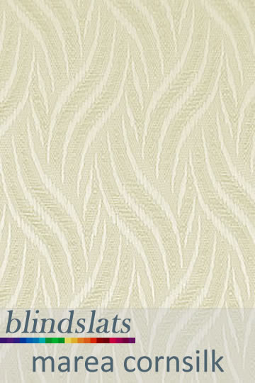 89mm Marea Cornsilk replacement vertical blind slats made to measure. Inter weaving effect self patterned fabric in a pale cream