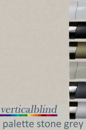 Made to measure complete vertical blind with Palette FR Stone Grey fabric louvres.