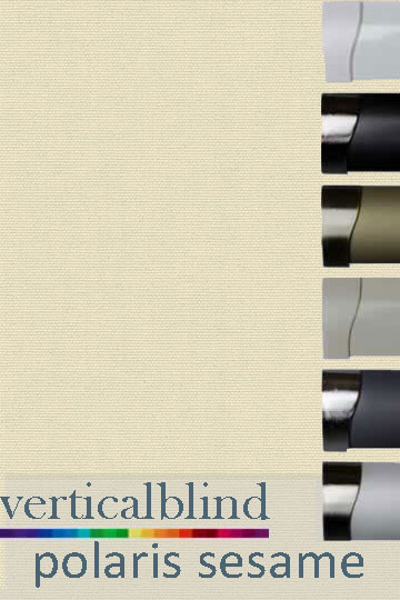 Made to measure complete vertical blind with Polaris Sesame fabric louvres.