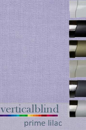 Made to measure complete vertical blind with Prime Lilac fabric louvres.