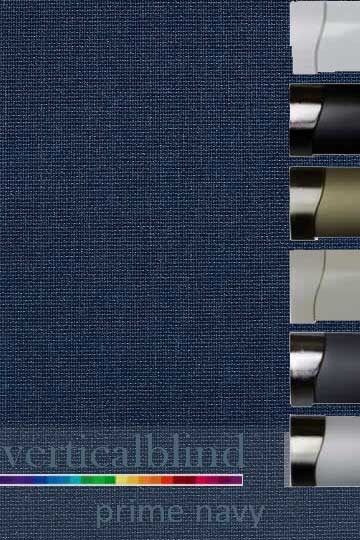 Made to measure complete vertical blind with Prime Navy fabric louvres.