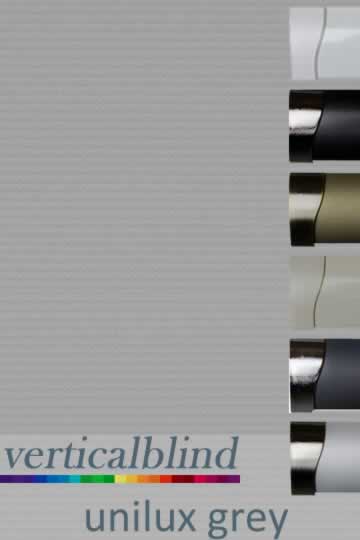 Made to measure complete vertical blind with Unilux Grey fabric louvres.