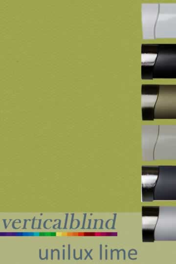 Made to measure complete vertical blind with Unilux Lime fabric louvres.