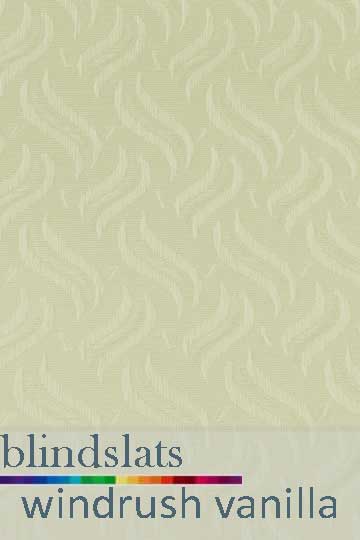 89mm Windrush Vanilla replacement vertical blind slats made to measure. Regular inverted squiggle, self patterned bright fabric.