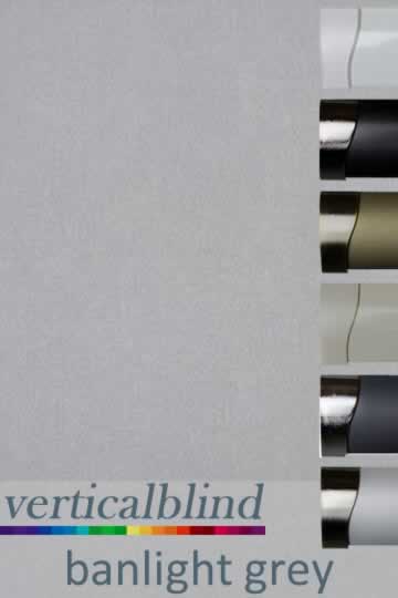Made to measure complete vertical blind with Banlight FR Blackout Grey fabric louvres.