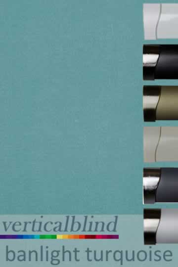 Made to measure complete vertical blind with Banlight FR Blackout Turquoise fabric louvres.