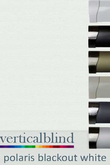 Made to measure complete vertical blind with Polaris Blackout White fabric louvres.