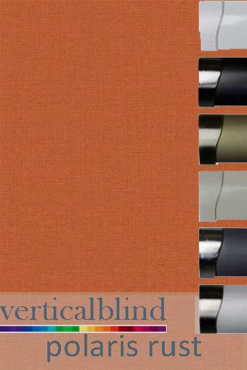 Made to measure complete vertical blind with Polaris Rust fabric louvres.