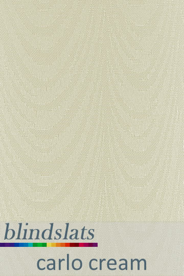 89mm Carlo Cream replacement vertical blind slats made to measure. Ruched drape effect self pattern fabric in light cream